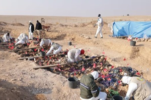 | Tuesday 23rd July, 2019. A mass grave unearthed 23rd July, in Iraq's Samawa city is believed to contain the remains of Kurdish civilians buried alive during the former Iraqi Ba'ath regime's Anfal campaign. Traditional Kurdish clothes in the grave along with the remains of the bodies, investigators believe the victims were from the Garmiyan area, (located south of the Kurdistan Region's Sulaimani province). The remains of 171 bodies were discovered, the majority appear to be women and children. Two more mass graves have been found in the locality. |