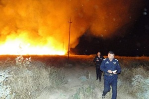 | Thursday 29th August, 2019. A huge fire has broken out at the North Oil Company in Kirkuk. The thick black smoke from the fire has polluted the air in the city. The Iraqi Authorities are trying to control it. |