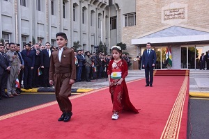 | Tuesday 17th December, 2019. Kurdistan Region Prime Minister Masrour Barzani attended a ceremony today to mark Kurdistan Flag Day. PM Barzani, together with the children of Hujam Surchi, a Peshmerga martyr, raised Kurdistan flag to celebrate the national day. Hujam Surchi was beheaded in a brutal Islamic State (IS) propaganda video on 27 January 2015 after he was taken captive by the jihadist group. |