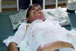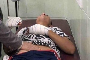 | Saturday 19th October, 2019. Mohammed Hamid, 13 suffering from severe burns he sustained during Turkish bombardment in Rojava, northeast Syria is set to be brought to Erbil by the Barzani Charity Foundation (BCF) for treatment. Mohammed Hamid, 13, was injured during the Turkish offensive to take Serekanye from the Syrian Democratic Forces (SDF). Local medical officials have accused Turkey of using unconventional and banned weapons in the battle, allegations which Turkey denies. He is in considerable pain due to the wounds, according to his father. |