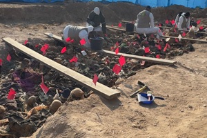 | Sunday 22nd December, 2024. A mass grave containing the remains of dozens of Kurdish women and children killed during former dictator Saddam Hussein's rule was unearthed in a remote desert in Iraq's southern province of Muthanna after recently being found through satellite images. The mass grave is in the Tal Sheikh area of Samawah, located 130 kilometers from the provincial capital. It was discovered in May through satellite images. Human skulls, pairs of shoes and traditional Kurdish clothes were among remains unearthed on the first day of exhumation. It is not clear how many people are buried in the mass grave but they are estimated to be nearly 150 Kurdish women and children. |