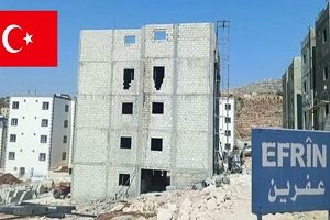 | Saturday 4th June, 2023. Turkey is reportedly constructing new housing settlements in the Afrin (Efrîn) region under its control in northern Syria. The project involves the construction of 50 four-storey buildings, with plans for an additional 200 homes nearby. These projects, coming after the Turkish incursion in 2018, which significantly altered the region's demographics, are forcing many Kurdish people to flee. The construction of the homes raises concerns about the long-term implications for Afrin and its original inhabitants, as it solidifies the demographic changes initiated by the Turkish offensive. |