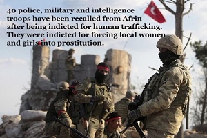 | Tuesday 19th November, 2019. Reports indicate that 40 Turkish soldiers, including a Major General, have been recalled to Hatay after being implicated in human trafficking in Afrin. A pro-Free Syrian Army Telegram channel posted evidence of the ring early this week after Turkish officials refused to release a FSA-affiliated media worker. Photographs of official identity cards belonging to at least two Turkish security personnel were published, along with photographs of some of their victims. |