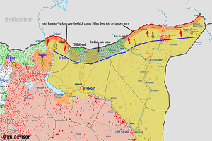 | Tuesday 22nd October, 2019. Russia and Turkey announced a wide-ranging agreement that would establish joint Russian and Turkish patrols along much of the Turkish and Syrian border within six days to create a "Safe Zone". The Russian-Turkish agreement says Kurdish militias must withdraw into Syrian territory beyond 30 km from the Turkish border. The SDF have not announced acceptance of this agreement however they have agreed to the new 150 hour ceasefire. |
