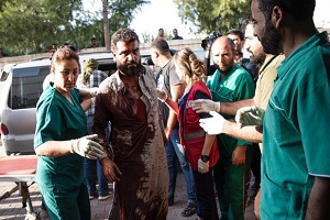 | Thursday 17th October, 2019. Turkish military shells Ras Al-Ain Hospital in conjunction with the announcement of the ceasefire by the U.S.A. and Turkish sides. Third time today so far and there are reports of civilian casualties in the hospital. |