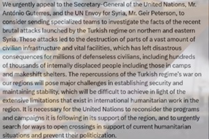 | Tuesday 17th May, 2022. A group of women's organisations and individuals, feminists, union representatives, journalists and academics have called on the United Nations to take steps to stop Turkey's attacks against Kurds in north Syria, east Syria, the Kurdistan Region of Iraq (KRI) and the Yazidi homeland of Sinjar. The statement was signed by 75 organisations and individuals from across the world. |