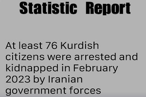 | Friday 3rd March, 2023. During February, 73 citizens have been kidnapped by the Iranian government institutions on charges of political activity and cooperation with Kurdish parties, and 3 citizens on charges of religious activities. 76 citizens in total arrested. Last month, at least one female activist, four children and teenagers under the age of 18, as well as two students and a teacher, were arrested in Kurdistan by the Iranian government. |