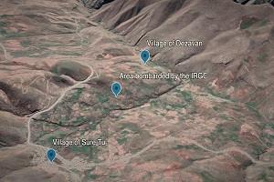| Wednesday 16th June, 2021. A military convoy of the Islamic Revolutionary Guard Corps (IRGC) forces have yesterday besieged and bombarded orchards in the areas near Sure Tu and Dezavan villages of Sarvabad, Kurdistan province. Reportedly, several people whose identities are currently unknown were killed as a result of these bombardments, and their bodies have been taken to the IRGC’s base in Sarvabad. According to the witness, a large part of the orchards and pastures that belong to the people caught fire as a result of the shelling, and the IRGC forces prevented the people from controlling the spread of the fire. |