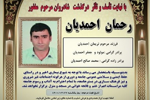 | Wednesday 21st July, 2021. A Kurdish civilian named Rahman Ahmadian has lost his life in the detention centre of the Intelligence and Public Security Police (PAVA) in Orumiyeh. He was arrested on 12 July along with five other residents of the village, security police contacted his family on 18 July and said he had committed suicide. The family went to receive the body but It was handed over to the family only after they agreed not to talk about it to the media. The family did not accept the reason given by the security police and the initial certificate and requested an autopsy, now the Forensic medicine department has postponed the announcement of the final autopsy opinion for another two months. |