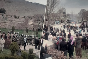 | Monday 20th January, 2020. Extensive Presence of Security Forces at the Funeral of Ukrainian Plane Crash victims, Arvin Moratab and Aida Farzaneh in Behesht-e Mohammadi of Sanandaj in addition to the burial ceremonies of Rezgar Rahimi and his son Zhivan Rahimi in Saqqez. “Despite pressure and threats from security agencies to cover the coffins with the flag of the Islamic Republic of Iran and bury their bodies in the martyrs’ section of Sanandaj cemetery, the families refused and buried them in Behesht-e Mohammadi in Sanandaj instead without using the flag of the Islamic Republic.“ |